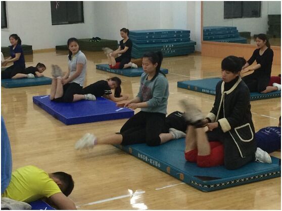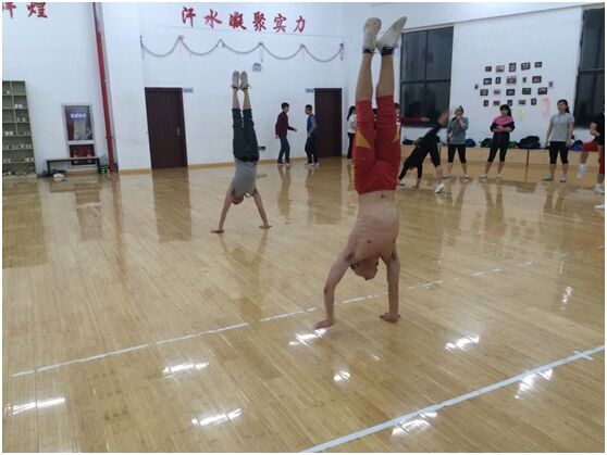 老师和健儿们每周都要进行5-7的常规训练,除此之外,还会在寒假和暑假期间加训训练一段时间。当其他同学们背上行李回家的时候,校队的健儿们仍旧在训练场上刻苦的训练,控腰、倒立、拉跨,有时候甚至会训练到刺骨拉筋、浑身疼痛,甚至身体都变得麻木。