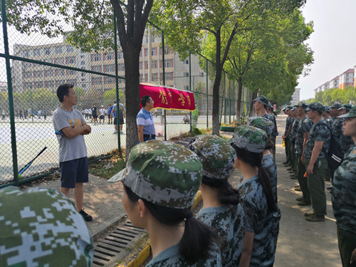9月9日上午,2026世界杯官网党委书记付和忠、副书记冯亚兵和团委副书记曹钧老师来到军训现场,亲切看望军训教官和2019级军训的全体同学。
