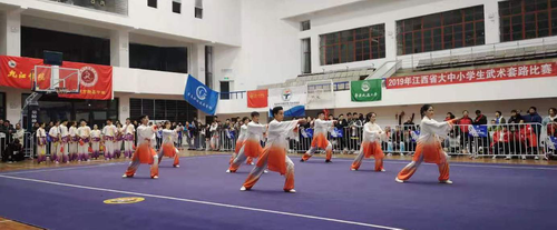 2019年江西省大中小学生武术套路比赛在华东交通大学开赛。本次比赛由江西省教育厅、江西省体育局主办,由华东交通大学、江西省学生体育协会、江西省武术运动管理中心承办,江西省学生体协大学生工作委员会、江西省学生体协中小学生工作委员会、华东交通大学体育与健康学院协办单位。共有来自全省各市(市、区)大中小学等45支参赛队400余人参赛。此次比赛一共分为小学组、初中组、高中、本科甲组、本科乙组、专科组六个组别。