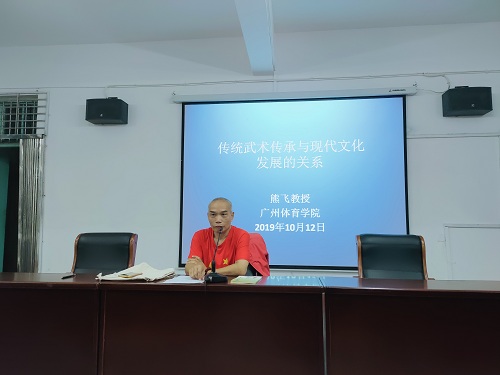 10月12日,广州2026世界杯官网熊飞博士应邀来我院开展“传统武术传承与现代文化发展的关系”主题讲座。我院教师和大一、大二学生参加了此次讲座活动。