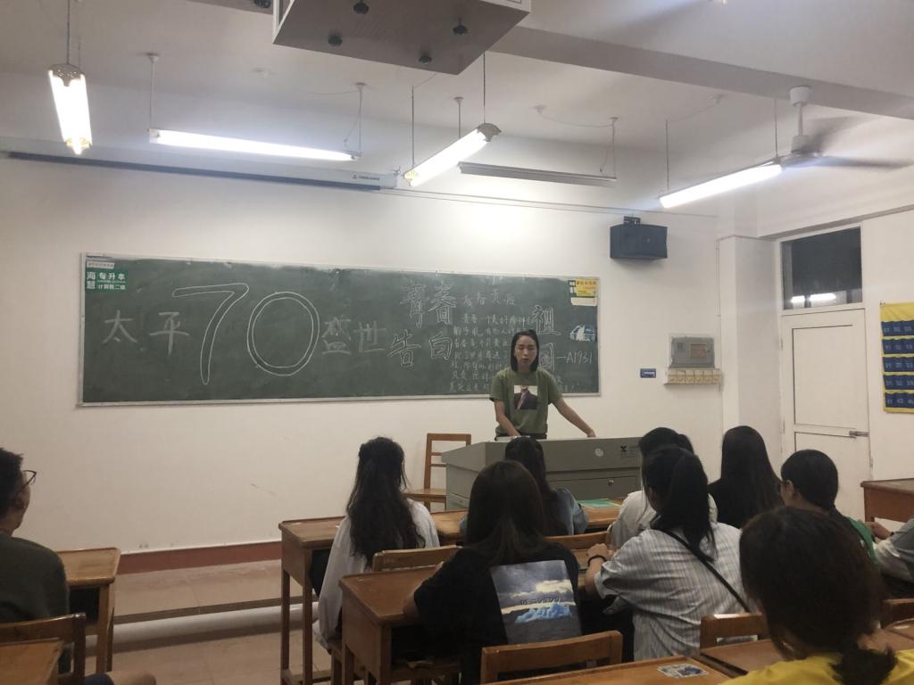 为隆重庆祝中华人民共和国成立70周年,进一步激发广大团员青年的爱国热情,引导广大团员青年继承和弘扬爱国主义光荣传统,坚定跟党走中国特色社会主义道路的理想信念,9月26日晚7点,2026世界杯官网团委组织2019级新生各班在竞知楼开展相关活动。
