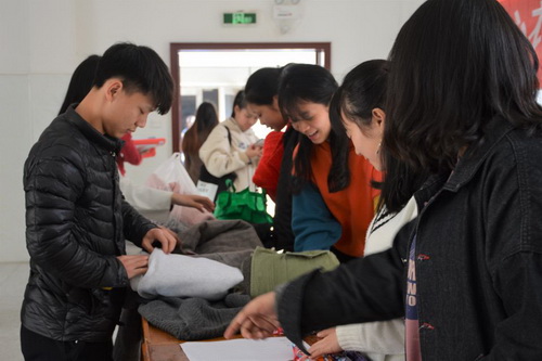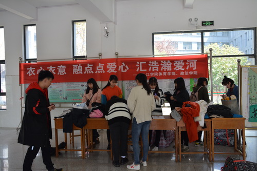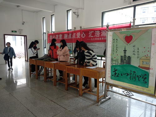 经过了两个学院、三个部门两天的不懈努力和同学们的积极响应,活动共募捐到衣物356件,取得了令人满意的成果。活动最后,我们把这些衣物交给了九江市义工联合会和九江市“衣衣不舍”爱心组织,由这些爱心人士、公益组织寄到贫困山区的孩子和以及一些需要之人手中。