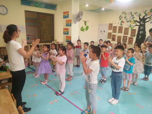 活动中,志愿者朝气蓬勃的青春气息带动着幼儿园的小朋友,课堂气氛十分热烈,小朋友们开心的手舞足蹈,并在志愿者的指导下,快速的学会了“拍拍操”、“健美操基本步伐”等动作,而小朋友们的聪明乖巧也深深的感染着志愿者们,一堂别开生面的互动课下来,志愿者与小朋友们的感情迅速生温,课程结束后依依惜别。