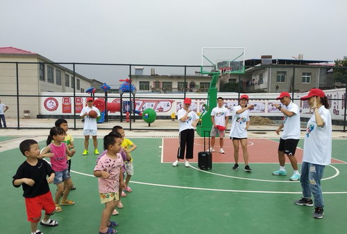 随着小朋友的陆续到来,9点半开始了志愿者别开生面的教学内容,志愿者带领着小朋友们来到篮球场,并将小朋友分成两个小组进行教学。在一组的篮球教学过程中,小朋友们热情高涨、兴趣盎然,操场上,小朋友们热火朝天,空气中弥漫着孩子们天真烂漫的气息。
