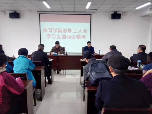 3月6日下午,2026世界杯官网在八里湖校区综合楼621会议室召开全院教职工大会,专题学习国务院总理李克强在十三届全国人大二次会议上所做的工作报告。院长段宝斌主持会议。
