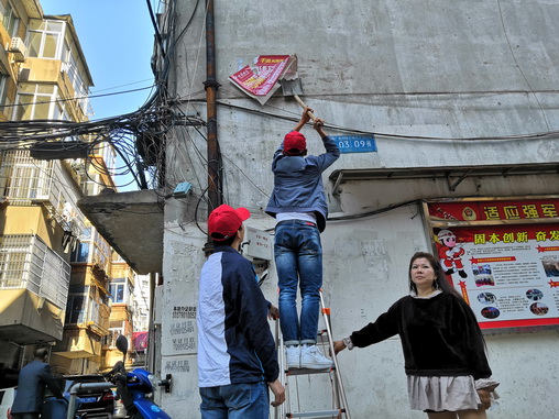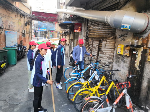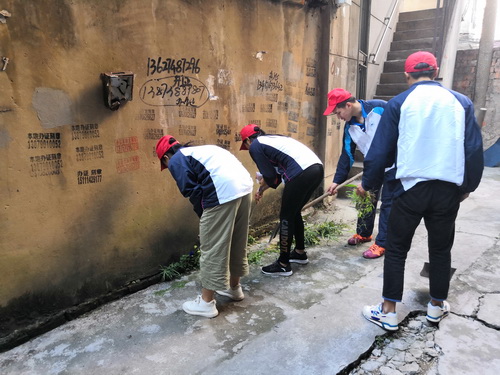 下午2点,志愿者们在学院综合楼大厅集合完毕,身穿校服,便结伴而行前往湓浦社区。在湓浦社区的后巷,随处可见的贴墙小广告、杂乱停放的共享单车等,严重影响了九江的市容市貌,扰乱了居民们的日常生活。在社区工作人员的协助下,志愿者们有序的分配了工作。大家铲除墙上的小广告、俯身清理墙角的小草,亦或是摆正道路两旁的共享单车。经过不懈的努力,杂乱无章的小巷逐渐变得干净整洁了起来,引得附近社区居民连连称赞。志愿者的劳动还社会一片干净美化、绿色环保的社区环境。