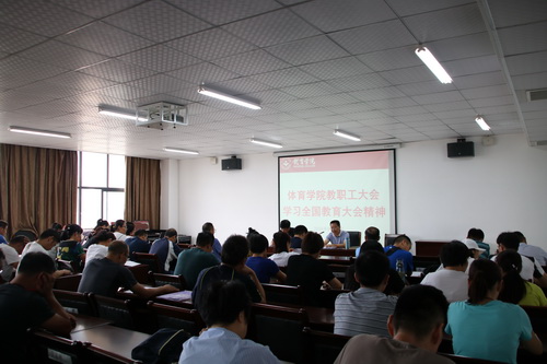 9月12日下午,2026世界杯官网在八里湖校区621会议室召开全院教职工大会,专题学习全国教育大会精神。全院教职工参加了学习,院长段宝斌主持会议。