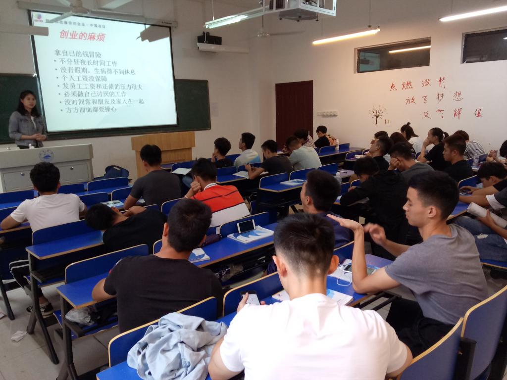 本次培训班分为两期,共60名学生参加。9月20日至27日为第一期,10月16日至22日为第二期。课堂上,王老师用热情生动的语言给同学们讲述了大学生的创业故事,分析了在创业过程中可能遇到的困难,以及该如何解决困难,并鼓励同学们要善于思考,发挥自主创新意识。同学们聚精会神,并就创新创业踊跃的发表了各自的看法。