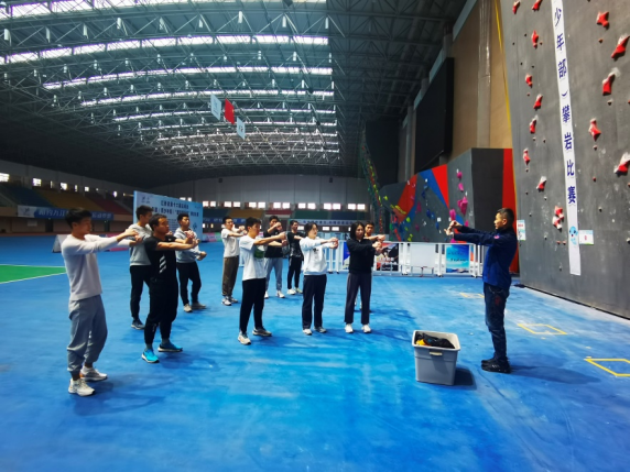 受聘仪式前,杨健老师还耐心指导了学生的攀岩课程,讲解了攀爬岩壁前的准备热身、攀爬动作要领,传授提高身体素质耐力及身体协调性的方法。生动有趣的课堂讲解示范,极大地提高了学生们对攀岩运动的兴趣和参与热情,有力地促进了攀岩课程的展开。