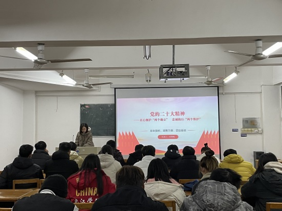 开班仪式后,刘晓梅副科长开讲本期青马工程培训第一课《党的二十大精神辅导——衷心拥护“两个确立”,忠诚践行“两个维护”》,从党的二十大报告起草过程、新时代十年伟大变革和党的二十大的最大成果等方面为同学们宣讲了党的二十大精神。相信经过本期“青马工程”的培训,一定会培育出一批勤思、勤学、勤干的青年马克思主义者,为国家和民族的发展注入青春之力,绽放青春光彩。
