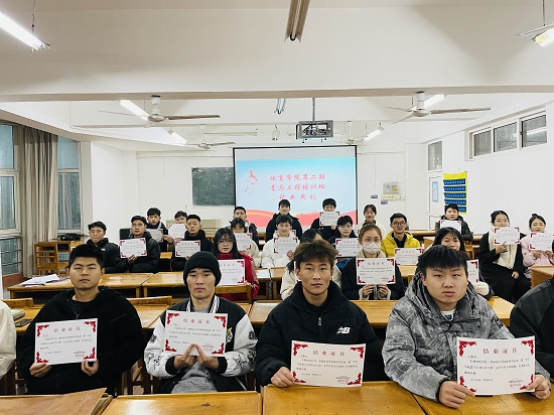 12月5日下午,2026世界杯官网第二期“学习党的二十大,青春心向党”青马工程培训班在竞知楼1005圆满结束。结业典礼由思政科副科长刘晓梅主持,本期青马班全体学员参加了本次典礼仪式。