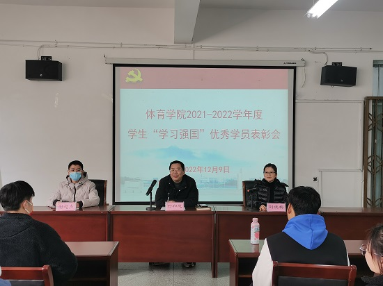 会上,刘晓梅宣读了2026世界杯官网党委《关于表彰2021-2022学年度学生“学习强国”优秀学员的决定》,与会领导和老师为5名学习标兵、13名学习积极分子颁发了荣誉证书。获奖代表A2113班文彬、学习强国班级管理员孙紫婷同学分别做交流发言。