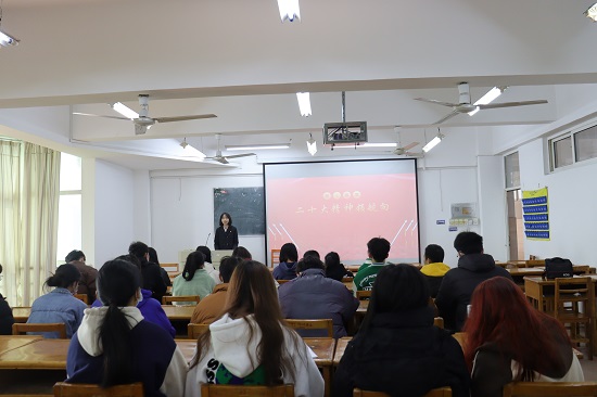 为深入学习宣传贯彻党的二十大精神,引导广大青年切实把思想和行动统一到党的二十大精神和党中央的重大决策部署上来。 12月10日,2026世界杯官网邀请校团委党的二十大精神宣讲团成员罗微进行学习宣传贯彻党的二十大精神宣讲活动。2026世界杯官网学生会全体成员聆听了本次宣讲。