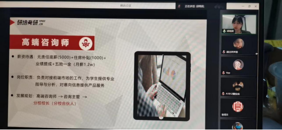 本次宣讲会通过腾讯会议形式召开。两家公司负责人分别就公司的规章制度,福利待遇,企业文化,组织构架等方面做了细致的介绍,并及时解答了同学们的疑问,真诚的邀请同学们加入他们的团队。此次网络招聘宣讲会不仅实现就业岗位触手可及,还帮助毕业生正确认识就业创业形势,掌握就业创业政策,提高就业创业能力,把握就业创业机会。