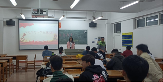 接着,各团支书带领同学们一起研习了《习近平与大学生朋友们》的部分章节,大家都由衷地感叹:习近平总书记一直心系广大青年,对青年学子关切深深、体贴入微,尽己之力给予帮助,让人深受感动,他是大学生们亲密的朋友和亲切的导师。