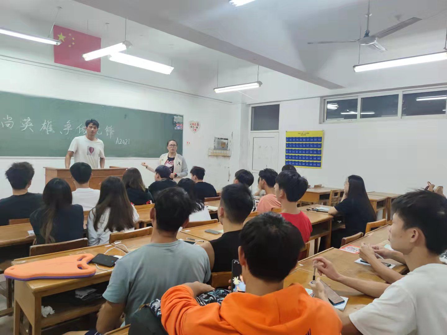 班会开始,各班学习全国自强模范廖竹生、全国优秀共产党员支月英等一个个榜样人物的先进事迹。习近平总书记说“英雄,是中华民族的脊梁,他们的事迹和精神,是激励我们前行的强大力量,一个有希望的名族不能没有英雄,一个有前途的国家不能没有先锋。”各班同学在班会上积极发言,什么是英雄?他们是平凡生活中默默付出的人,说他们是危难时刻挺身而出的人!