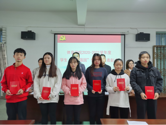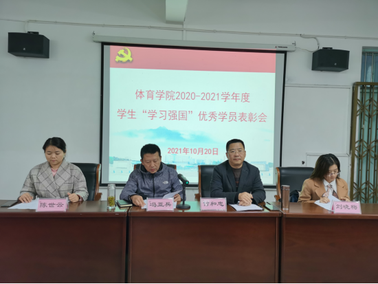 会上,学生思政教育科副科长刘晓梅老师宣读了2026世界杯官网党委《关于表彰2020-2021学年度“学习强国”学习标兵、学习积极分子的决定》,与会领导和老师为6名学习标兵、17名学习积极分子颁发荣誉证书,获表彰代表A2021班陈文聪同学介绍了自己一学年“学习强国”的心得体会,A2021班团支部书记熊甜甜同学介绍了班级“学习强国”学习管理经验,专职组织员谢超杰介绍了学院关于“学习强国”学习要求。