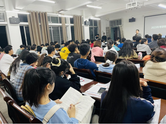 讲座中,黄老师通过对近年来的考研数据分析,阐述了考研的重要意义,并就院校和专业选择、各科分数的目标设定等九个方面做了精细化解析。最后在互动环节,黄老师对学生们提出的在考研准备过程中遇到的问题和困惑一一作了详细全面解答, 并传授了一些学习方法和技巧。在场学生聚精会神地听讲,伴随着热烈的掌声,本次考研专题辅导讲座圆满结束。