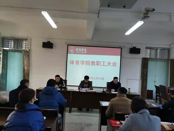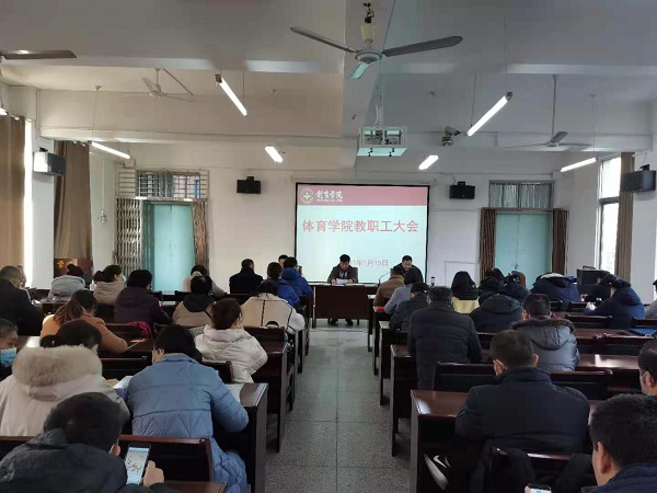 院长段宝斌传达了学校期末全校领导干部会议精神,对全体教职工一年来的辛勤工作表示感谢,并就学院学期末及寒假有关工作进行了布置。段院长要求,一是全体教师做好期末有关教学资料的汇总上交工作,保证教学质量评价、期末试卷成绩顺利上传,教师个人和教研室相关材料的存档;二要提前筹划运动队训练,备战2022年省运会;三要做好十四五规划修编,做好国家基金等各类课题申报工作,为下一轮申硕做好准备;四是做好校园安全防范和疫情防控工作。