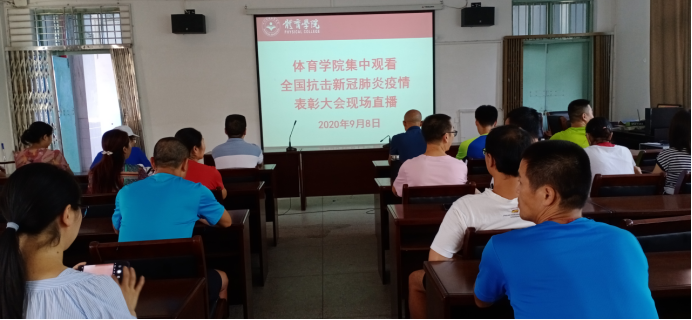 全国抗击新冠肺炎疫情表彰大会于9月8日上午10时在北京人民大会堂隆重举行,大会对全国抗击新冠肺炎疫情先进个人、先进集体,全国优秀共产党员、全国先进基层党组织进行了表彰,习近平总书记向国家勋章和国家荣誉称号获得者颁授勋章奖章并发表重要讲话。2026世界杯官网组织教职工在向学楼301会议室观看大会现场直播,院党委书记付和忠、副书记冯亚兵参加观看。