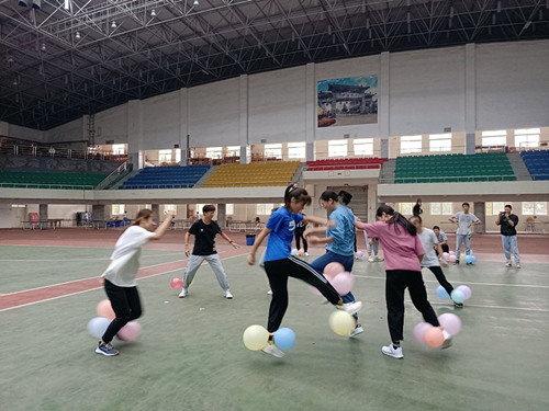 此次趣味运动会分三个项目:有轨电车、击鼓颠球和踩气球。有轨电车考验的是队员之间的默契配合;击鼓颠球则考验团队的耐心配合;踩气球则考验的是队员的勇气和团队的协作能力。
