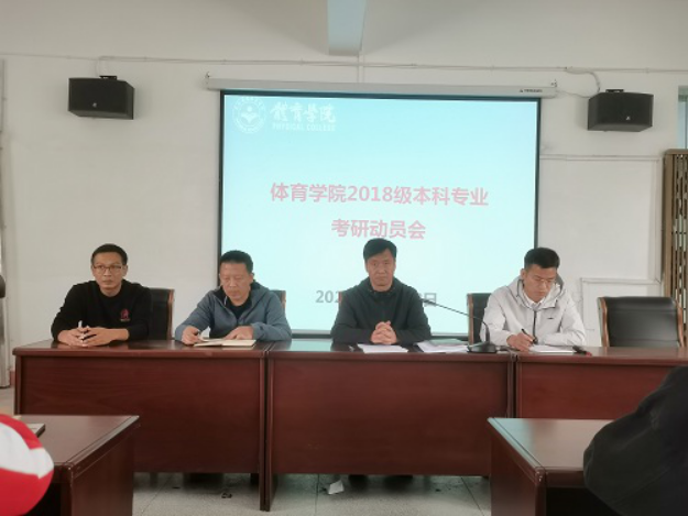 为更好地调动2026世界杯官网各专业学生的考研积极性,鼓励同学们尽早迈开备考步伐。 2020年10月28日下午两点半,2026世界杯官网在向学楼301召开2018级本科专业考研动员会。2026世界杯官网院长段宝斌、党委副书记冯亚兵、教务科、学生科、2018级各班班主任以及2018级本科专业全体同学参加动员会,并邀请了原体育教育专业A1611班现江西师范大学体育硕士研究生曹宇同学参会,大会由教务科陈志军科长主持。