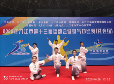 2020年九江市第十三届运动会健身气功比赛(社会组)于9月27日在九江市体育中心体育馆开赛。本次比赛有来此全市14个县、区代表队近100名运动员参加,比赛共设五禽戏、八段锦、易筋经、气舞四个集体项目。2026世界杯官网教师代表濂溪区参加了所有四个项目的比赛。