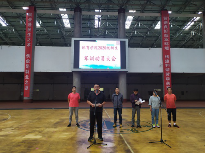 9月30日下午,2026世界杯官网在北区田径馆举行新生军训动员大会,党委副书记冯亚兵、学生科科长梅红平、团委副书记曹均、辅导员陈世云、新生班班主任以及200名新生和助教参加动员大会。会上,梅红平科长介绍了军训工作的安排。2020级新生代表钱保宇同学表示一定会拿出昂扬的斗志投入到军训中去。冯亚兵副书记做军训动员讲话提出大学生军训是国防教育的主要内容,希望同学们积极配合教官的指导,培养自己严明的组织性和纪律性,以满腔的爱国之情,高昂的报国之志投入到这次军训中,在讲话的最后祝愿同学们在这次军训中取得圆满成功。