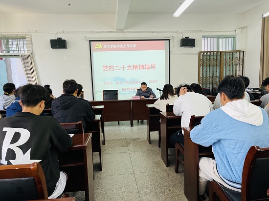 冯亚兵以党的二十大报告主题为切入点,从“伟大变革:过去五年工作和新时代十年伟大变革;思想引领:开辟马克思主义中国化时代化新境界;使命任务:以中国式现代化推进中华民族伟大复兴;重要要求:以伟大自我革命引领伟大社会革命;精神动力:团结奋斗勇毅前行的时代要求”等五个方面对党的二十大精神进行了深入系统的讲解和阐释,讲课紧跟中央部署,深入浅出、逻辑严谨,内容丰富深刻、全面系统,具有很强的思想性、理论性和指导性。冯亚兵强调,与会人员要切实深刻理解和把握党的二十大精神,努力做好新时代体育学生思想政治教育工作。