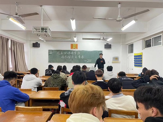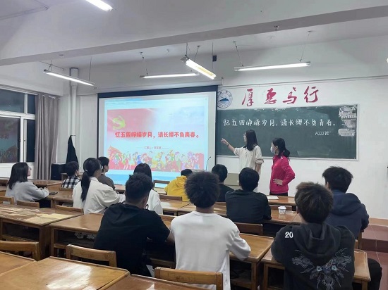 活动中,各班团支书带领同学们重温了党的二十大报告,回顾中国共产党百年奋斗历程和“五四”光荣历程。并详细介绍了五四的起因、经过、结果。讲到我们党立志于中华民族复兴,致力于人类和平与发展的崇高事业,责任重大,同学们务必不忘初心、牢记使命,砥砺前行新征程,踔厉奋发向未来,谱写新时代中国特色社会主义更加绚丽的华章。