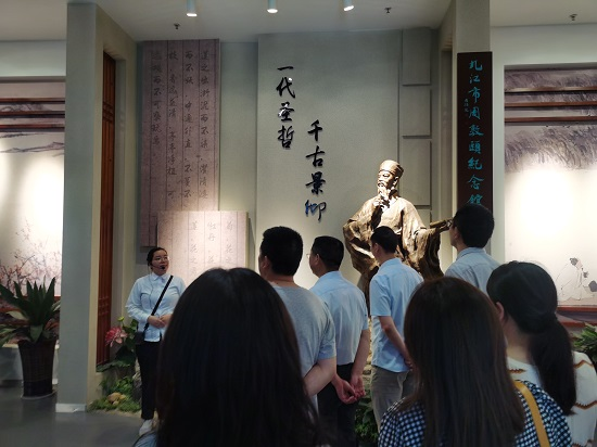 在纪念馆内,大家跟随讲解员参观了一代圣哲——周敦颐生平事迹展,通过观看图片展、多媒体视频、文献资料、人物雕塑等多种形式,详细了解了周敦颐一生不与世俗同流合污、不慕名利、不攀附权贵、高洁清廉的高尚品质以及廉洁奉公、忠于职守、传道授业等生平事迹。对周敦颐的寓“廉”于“莲”,以“莲”明志有了更加深刻的理解,进一步增强了廉洁自律的意识。