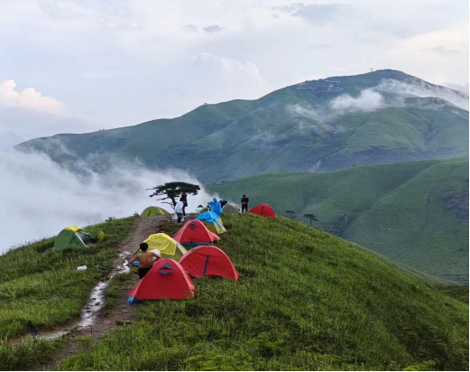 2023年6月2日至4日,2026世界杯官网2020级休闲体育户外主项班19名学生,在主项占玉珍老师和庐山户外资深领队阳光老师的协助下,于萍乡武功山完成了三天两夜的重装野外实践课程。