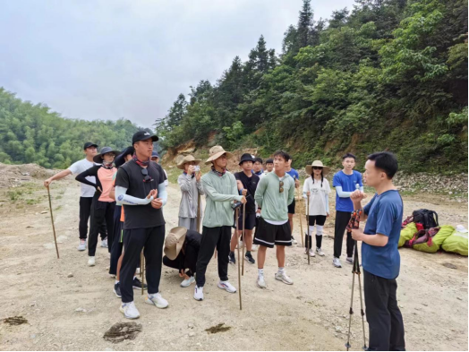 在户外出发的准备会上,占老师对本次实践课程进行了分工和布置。学生根据教师布置的任务进行了路线策划、队员分组、装备统计和分发、路段实践任务分工,充分把在学校学习的理论应用于实践当中。在整个行军过程中,将所有人分成四个小组,各队轮流进行户外领队的实践,分别完成了户外领队、野外食物辨别、野餐制作、营地选取与规划、帐篷搭建、野外方向辨别、LNT法则学习与使用等实践任务。