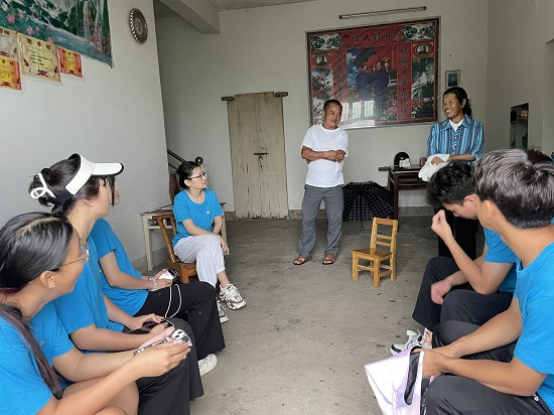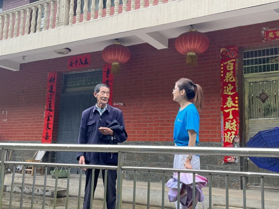 到达金盘村后,志愿者们首先来到村里开展走访调研,为了解群众的实际情况,坚持到群众中去、到实践中去,通过与村民们的交谈了解到,当前农村的人口结构现状、教育资源、产业结构及对医疗政策了解等方面存在的问题,让接下来能够更好地提升本次志愿服务质量奠定了基础。