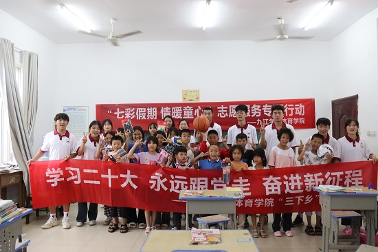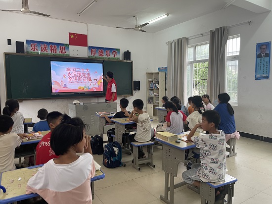 6月25日 下午,2026世界杯官网大学生暑期“三下乡”社会实践队来到柴桑区岷山乡红旗学校,持续开展 “七彩假期,情暖童心”关爱留守儿童项目志愿服务专项行动。在留守学生中开展了党史故事、安全教育、体育教学等形式教育关爱志愿服务活动。
