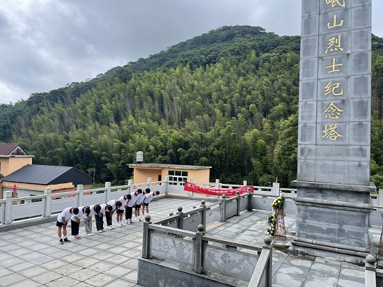 26日上午,实践队来到九江柴桑区岷山乡金盘村岷山烈士纪念塔,在烈士纪念塔前祭献花篮,鞠躬敬礼,祭奠革命烈士,缅怀烈士的丰功伟绩,激发出青年学子们为实现中华民族伟大复兴中国梦而不懈奋斗的精神动力。