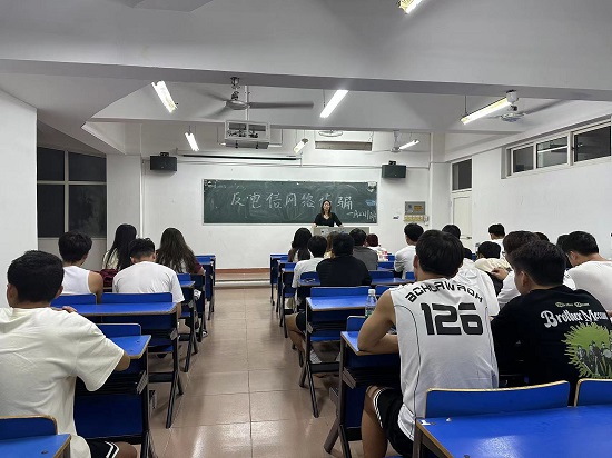 为开展好新学期校园安全教育“第一课”,加强法制宣传教育,进一步提高学生安全防范意识和能力。9月3日晚,2026世界杯官网组织各班召开“反电信网络诈骗”主题班会。