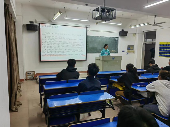 活动中,学生党支部学生党员深入各新生班级进行宣讲,围绕对“为什么入党”“什么标准能够申请入党”“怎样入党”等方面来讲解学生党员的发展程序。又从 “入党动机”“入党条件与流程”等方面着重强调了党员的责任义务、入党申请书的规范撰写等问题,让同学们对入党条件、程序有了更加清晰的认知。