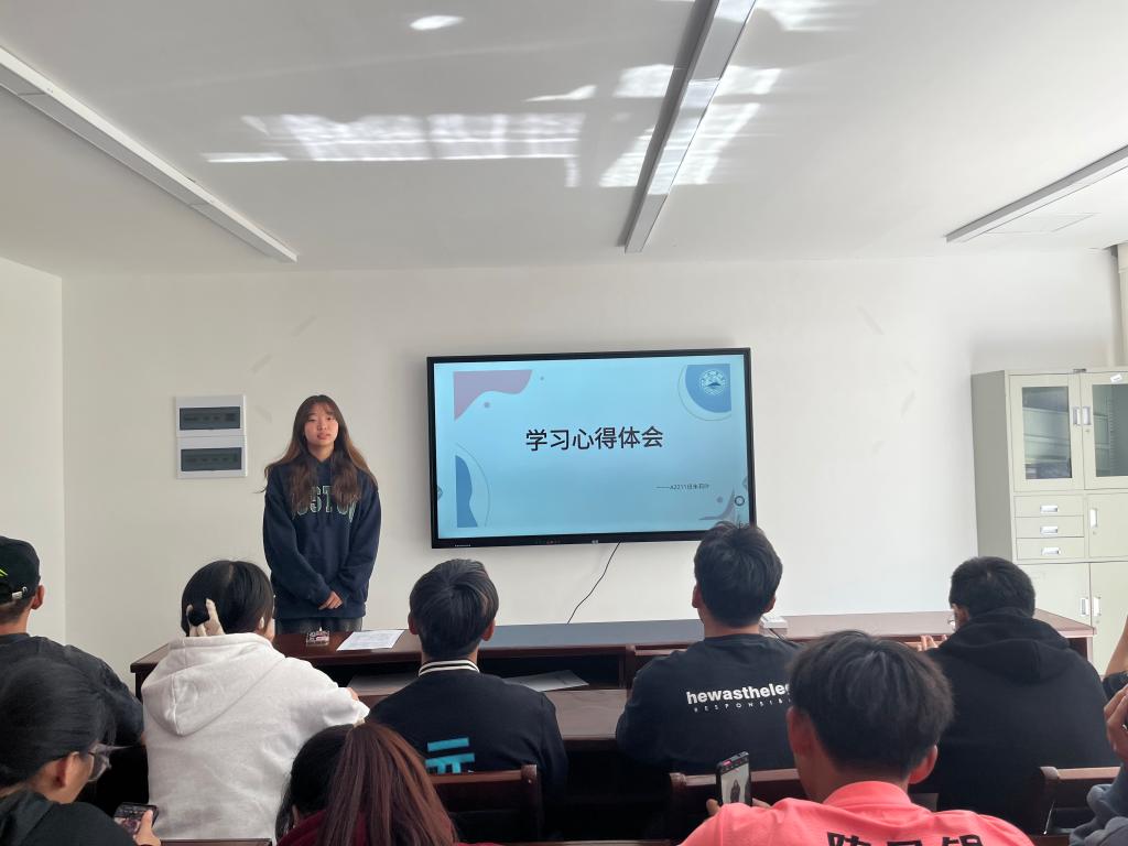 活动邀请了学校一等奖学金获得者、体教专业A2211班朱莉叶同学分享其典型事迹和学习方法。