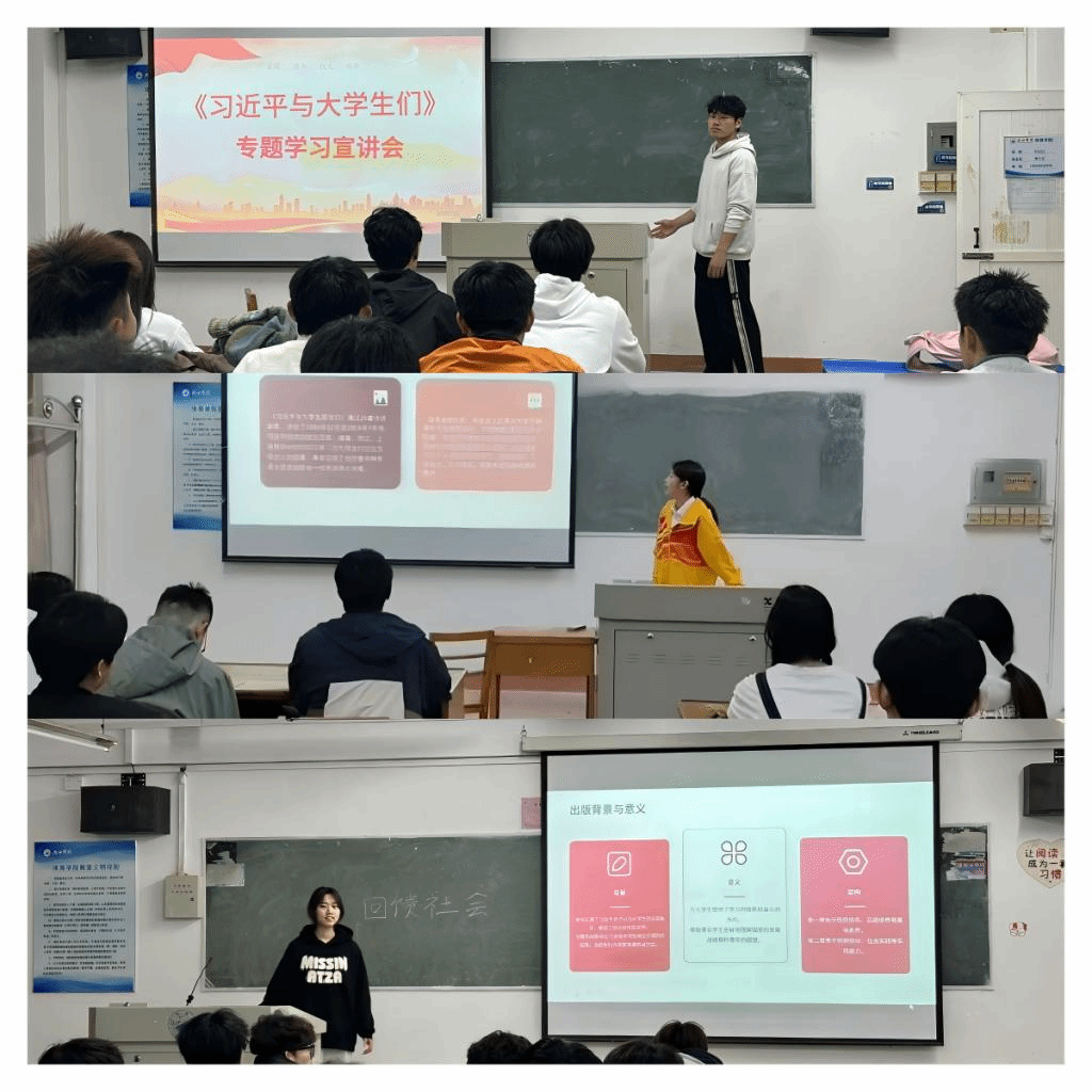 3月2日晚,宣讲团深入各团支部,开展《习近平与大学生朋友们》卷一、卷二的学习宣讲。宣讲团成员们深入研读资料,紧密结合学院专业特色,从不同角度分享阅读感悟。有的成员通过还原习近平总书记与大学生交流互动的场景,深刻阐述青年在时代发展中的责任与担当,让同学们深切感受到青年一代在国家发展进程中的重要地位;有的成员以自身经历为切入点,讲述如何在学习和生活中践行书中精神,激励同学们积极进取、奋发向上。台下同学聚精会神,积极与宣讲团成员互动交流,现场气氛热烈,思想的火花不断碰撞。