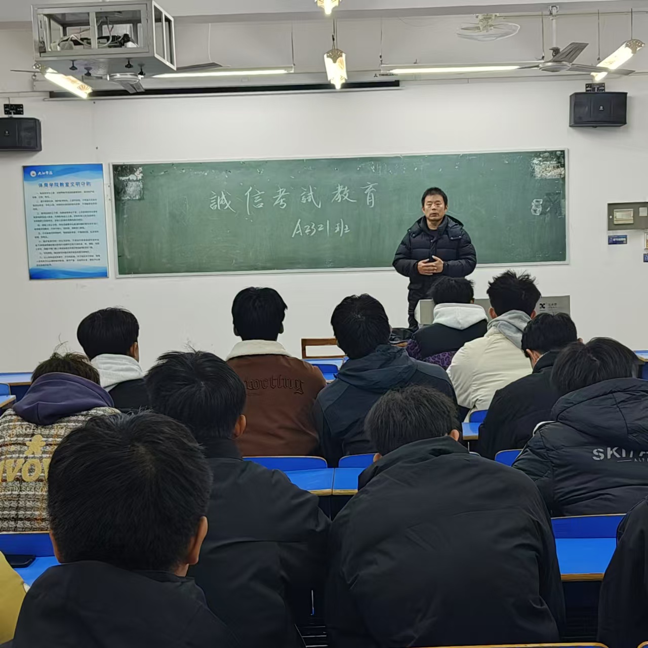 在班会上,辅导员和各班班长带领同学们认真学习了学校关于考试的规章制度,强调诚信考试的重要性和违反考试纪律的严重后果。通过列举真实案例,让同学们深刻认识到诚信考试于个人而言、于家庭而言,乃至于社会而言的重要意义。