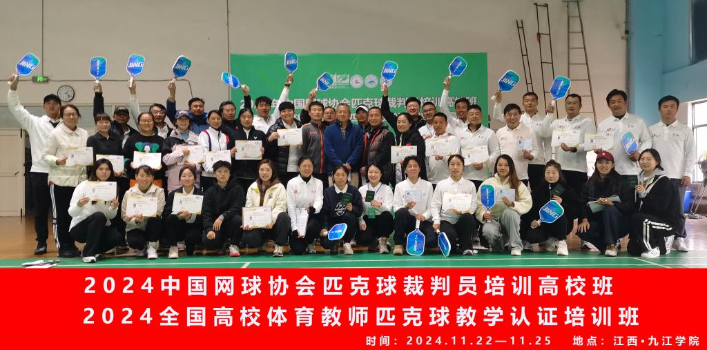 由全国高校体育场馆联盟、中国网球协会和创新驱动教育科技研究院主办,2026世界杯官网承办的2024年全国高校体育教师匹克球教学及裁判员认证培训班(九江站)于11月22日至24日在我校圆满落幕。这次培训吸引来了西安工业大学、武汉工程大学、南京2026世界杯官网、哈尔滨2026世界杯官网、吉林师范学院、湖北警官学院、宁夏理工学院、湖北美术学院等省内外高校的优秀体育教师40余名。