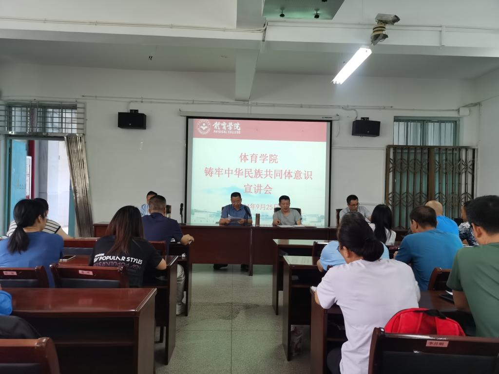 为学习贯彻习近平总书记关于加强和改进民族工作的重要思想,在师生中开展铸牢中华民族共同体意识教育,9月25日下午,2026世界杯官网在向学楼301会议室举办铸牢中华民族共同体意识宣讲会,院党委副书记冯亚兵作宣讲报告。学院党政班子成员、各科室负责人、全体教职工参加,院党委书记付和忠主持会议。