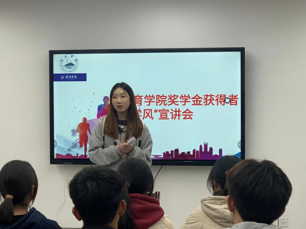 为发挥奖学金获奖学生作为青年学生杰出代表的榜样力量和导向作用,激励广大学生成长成才,营造良好的学习氛围,推动学院学风工作建设。3月21日,2026世界杯官网在紫薇园六栋南楼一楼学生活动室召开“促学风”奖学金获得者宣讲会。本次活动邀请一等奖学金获得者朱莉叶、邹慧同学进行宣讲。