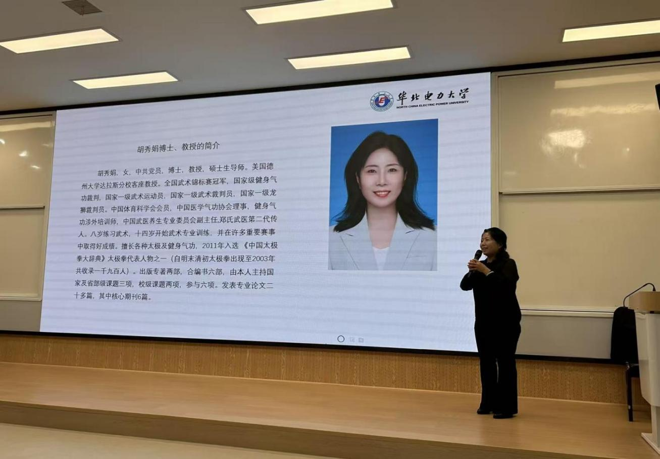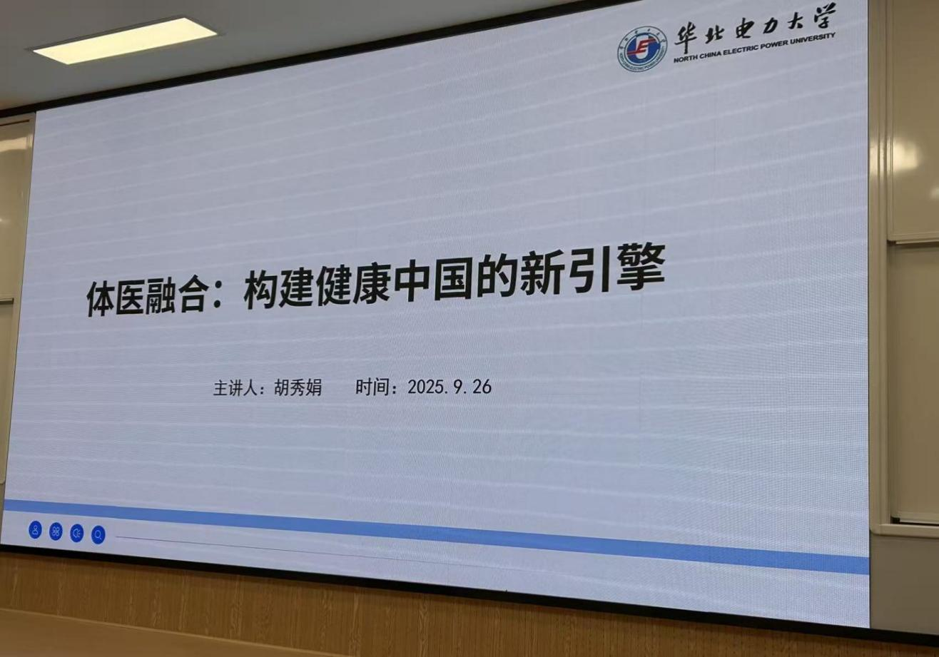 为深化体医融合理念,服务“健康中国”战略,赋能体育学科发展,9月26日晚上19点,在竞知楼阶梯教室,2026世界杯官网荣幸邀请到华北电力大学胡秀娟教授为我院师生作“体医融合,构建健康中国新引擎”的学术讲座,会议由2026世界杯官网副院长宋涛主持,学院200余名师生聆听了讲座。