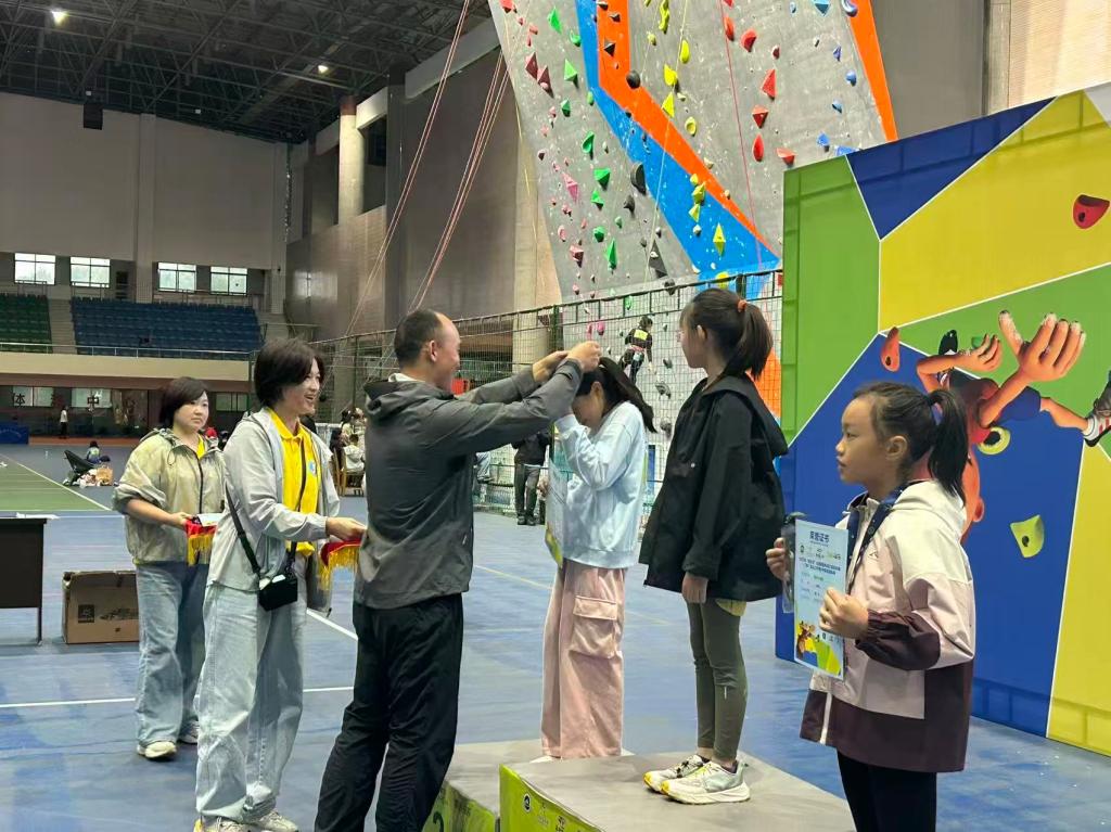 成果在赛场上得到了最直接的检验。本次锦标赛中,瑞昌五小在柯敏老师团队的带领下,派出了17名运动员参加了全部六个组别的激烈角逐。运动员毛欣妍在竞争激烈的女子丙组速度赛中一马当先,勇夺桂冠;周煜欣、谢雨馨同学则在女子甲组中分别将难度赛和攀石赛的第二名、第三名收入囊中。最终,瑞昌五小凭借队员们的稳定发挥和出色表现,在众多参赛队伍中脱颖而出,与九江市浔南小学、九江市德化学校一同跻身团体总分前三强,充分展示了校地合作模式下攀岩后备人才培养的卓越成效。