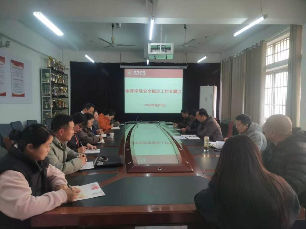 宋涛传达学习了学校2026年第一季度安全稳定工作会精神,分析了学院近期安全稳定工作情况,就学院安全稳定工作和平安建设主题宣传月活动进行部署。副院长王东升就办公场所、课堂安全、训练安全、场馆安全、实验室安全等工作做了强调。