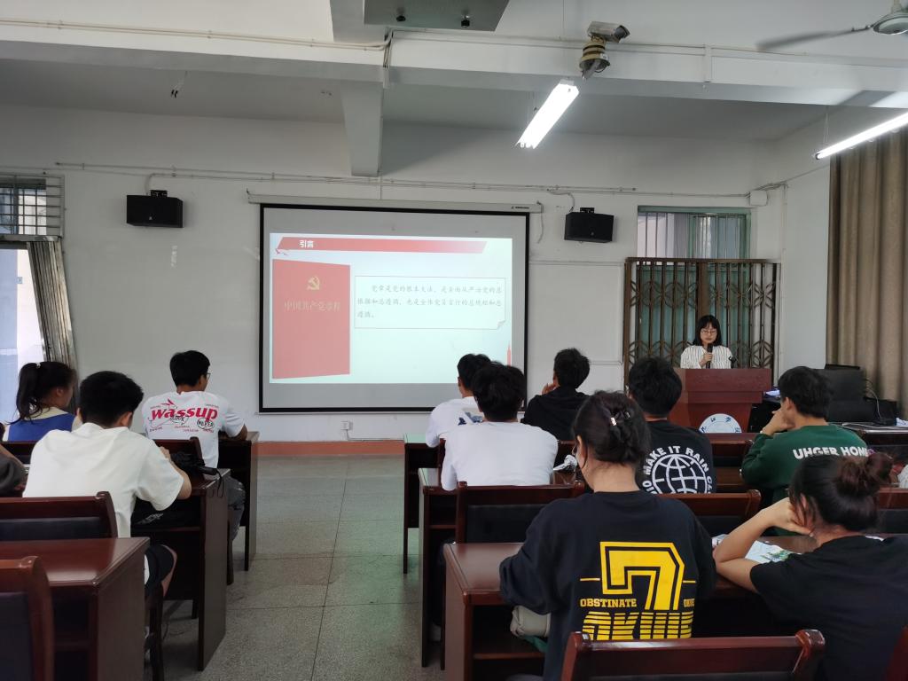 11月1日下午,在向学楼301会议室,培训班邀请外国语学院组织员程洁老师为学院积极分子讲授题为《党的基本知识》的专题辅导党课。她详细讲述了党的性质、指导思想、根本宗旨、纲领、党员的义务和权利等党的基本知识。辅导结束后,学员们集中观看了专题片《榜样7》,学习视频中的先进典型。