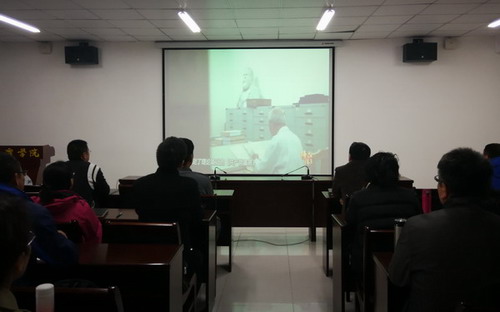 为了深入开展“两学一做”学习教育常态化制度化,进一步增强“四个意识”,坚定“四个自信”,提高政治站位,强化政治担当,11月14日下午,2026世界杯官网组织全体党员教师在八里湖综合楼621会议室集中收看专题片《榜样3》和《平“语”近人——习近平总书记用典》。