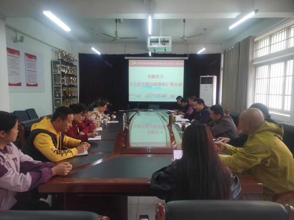 10月28日上午,2026世界杯官网在向学楼311会议室召开10月份党委理论学习中心组(扩大)学习会,专题学习《习近平谈治国理政》第五卷,学院领导班子成员、科室负责人、党支部书记参加了会议,教育学院党委副书记高原听会指导,会议由院党委书记付和忠主持。